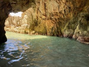 遠浅できれいな海と鍾乳洞のような天然の洞門もあり、