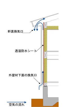 単純に壁の中を密閉してしまうのではなく、温度差や壁内の気圧の差を利用して空気の流れを作り、常に木材を乾燥させるような構造です。